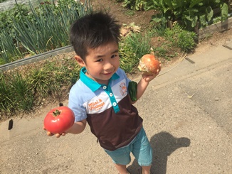 そんな中、休みは息抜きに、、、チビと野菜とってきました