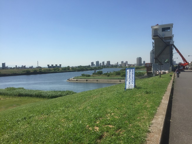 会社の裏の川の土手がサイクリングロードになっているので とりあえずは荒川までと