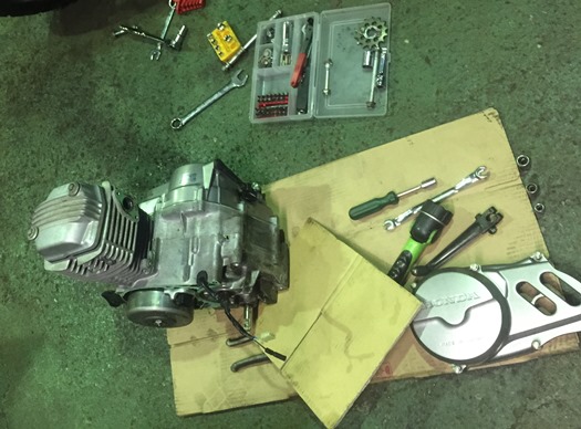 とりあえず、バイクからエンジンをおろして、、
